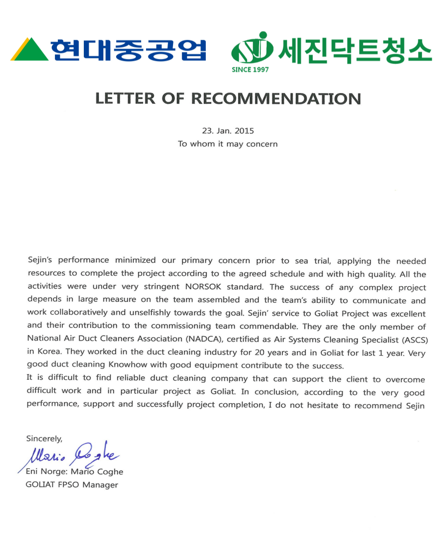 울산 현대중공업 선박 전층 공조덕트청소(추천서 첨부)